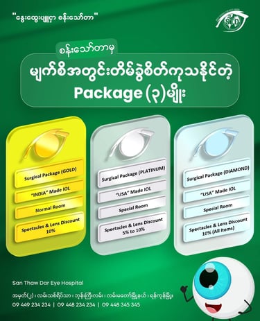 မျက်စိတိမ်ခွဲစိတ်ကုသနိုင်တဲ့Package(၃) မျိုး